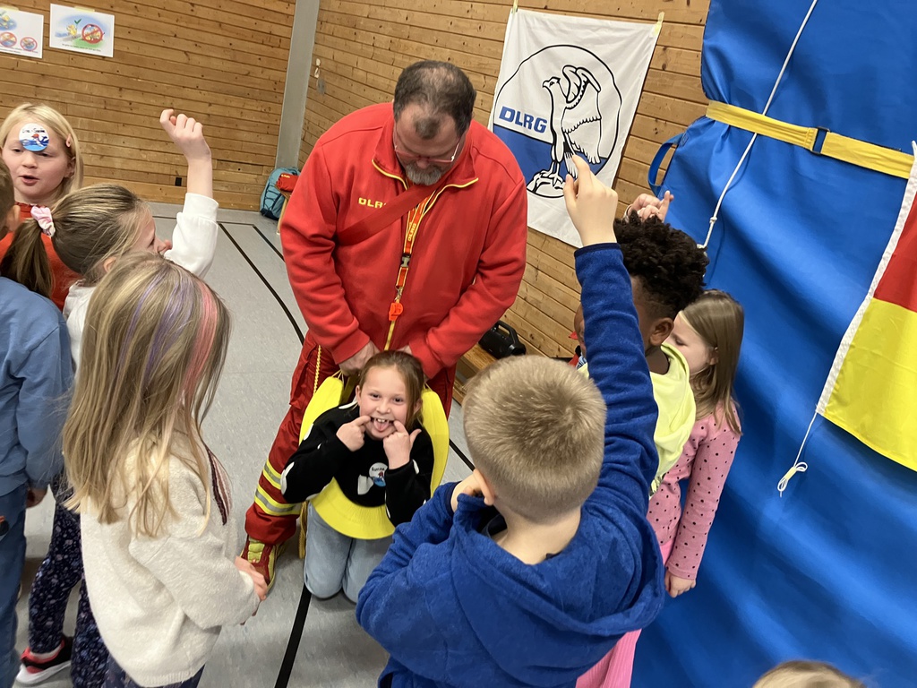 Am Dienstag, den 18.11., bekamen die zweiten Klassen der Grundschule Neuenmarkt Besuch von Herrn Wittmann und seiner Kollegin von der DLRG.