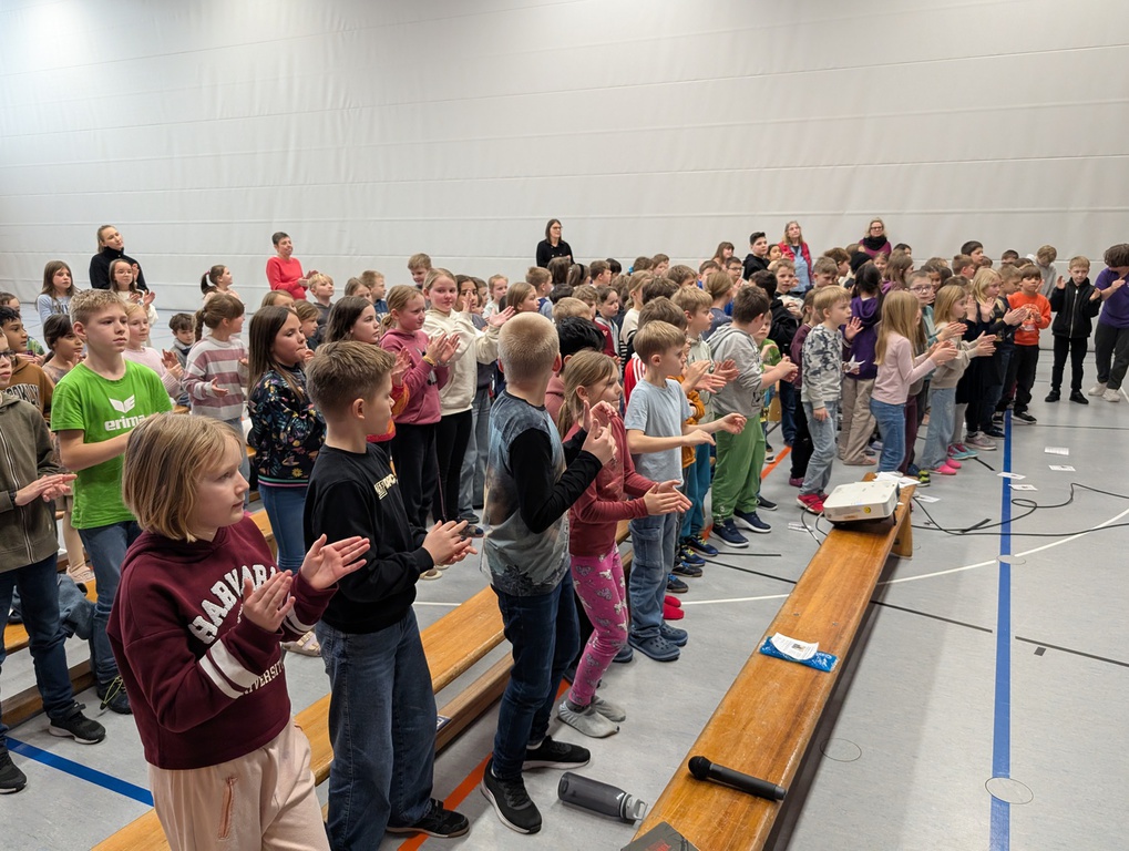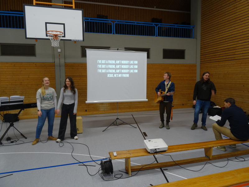 8 der Bibelschülerinnen und Bibelschüler waren am 30.01. in unserer Schule zu Gast und begeisterten die Schüler für den Glauben an Jesus durch fröhliche Musik, interaktive Spiele und bewegende Erzählungen.
